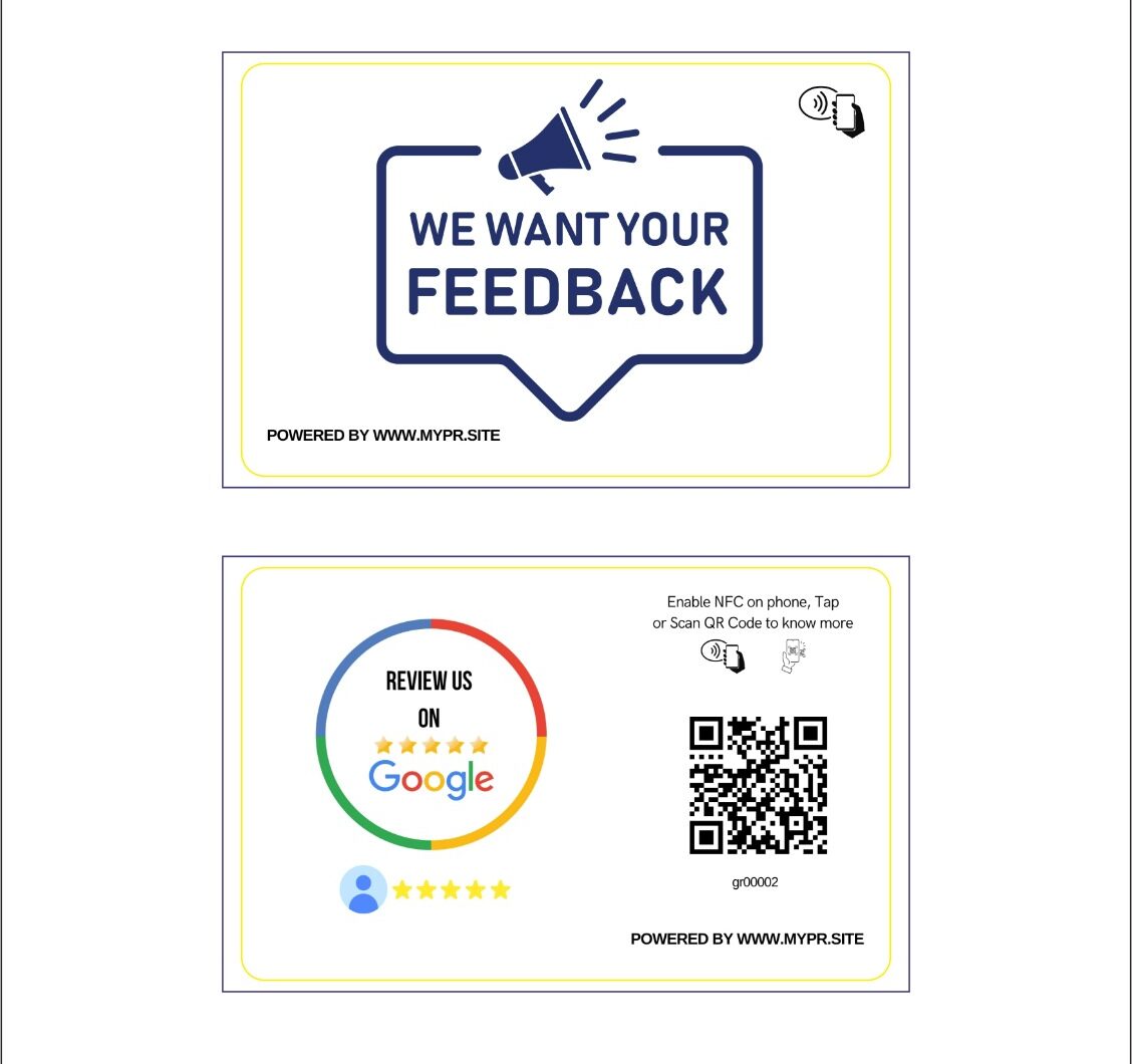 At Go Green Cards by MyPR.site, we offer custom-designed NFC Google Review Cards that seamlessly blend sustainability with your unique brand identity.